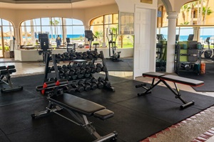 Located inside the clubhouse (which is in the center of the resort), you will find gym equipment, multiple tables and chairs, and both a men's and women's restroom.